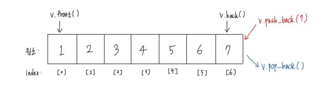 - v.pop_back() : 맨 마지막 원소를 제거한다.