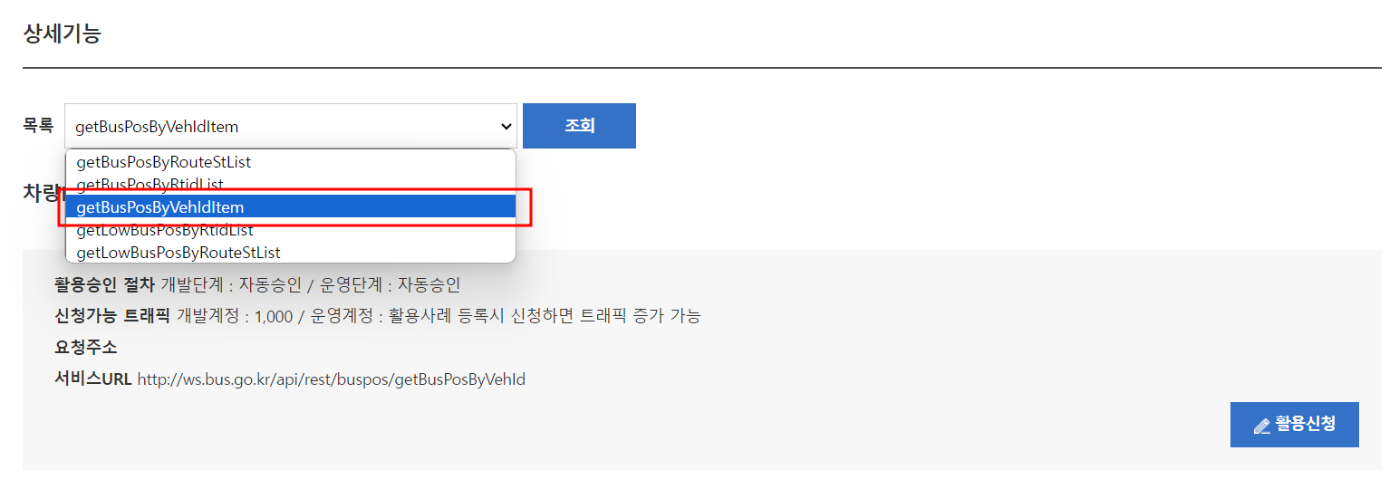 저는 서울특별시 버스 위치 정보 조회 서비스를 선택했습니다. 근데 막상 해당 페이지에 들어가 보면 정말 막막한데요,