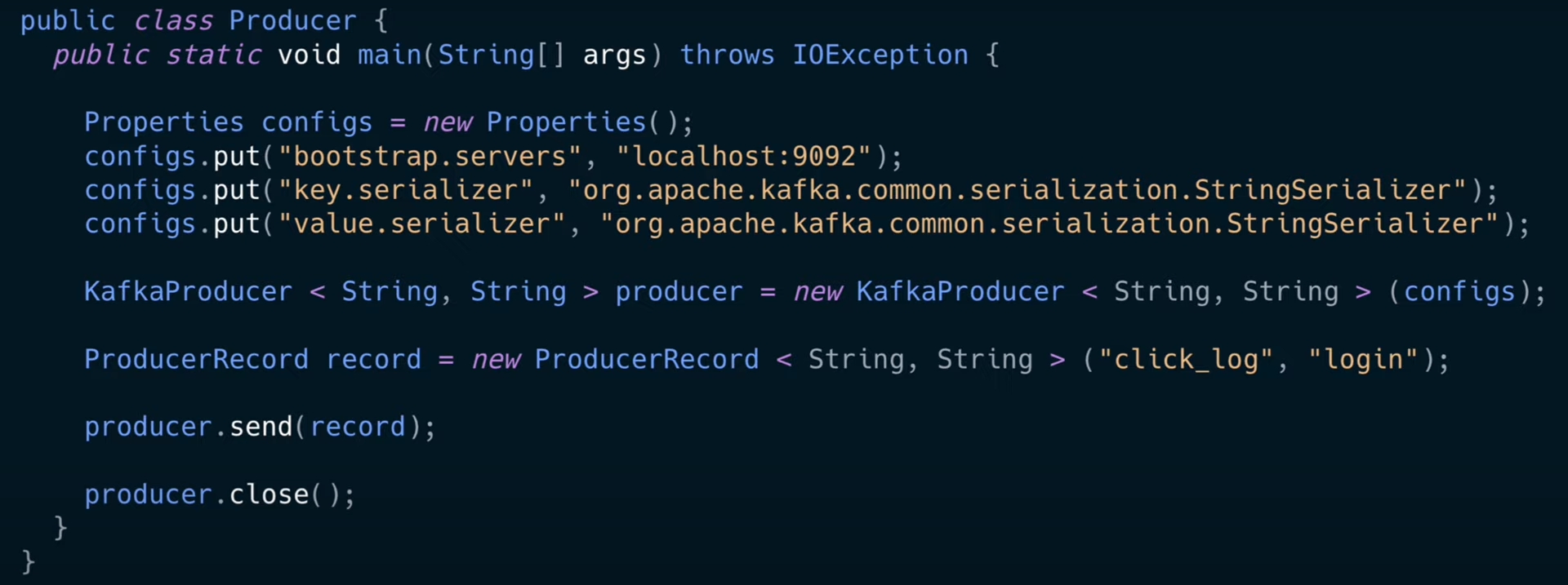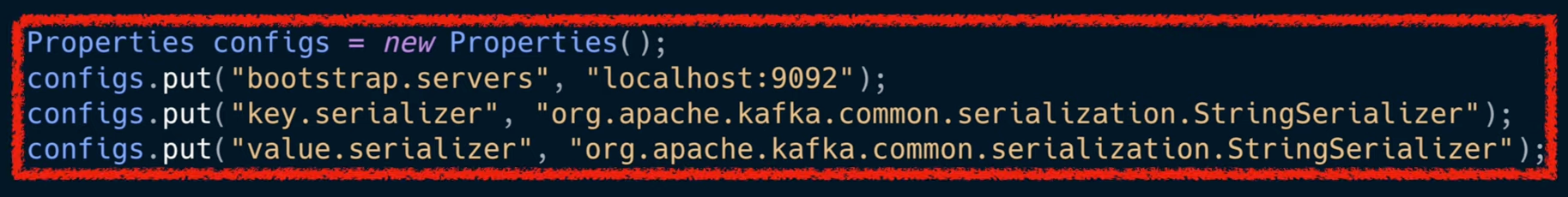 - 설정한 프로퍼티를 사용해서 카프카 프로듀서 인스턴스를 생성한다.