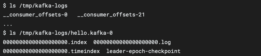 아래 사진에서 각 로그 파일 이름은 각 파일에서 가장 처음 만들어지는 오프셋 번호와 같다.