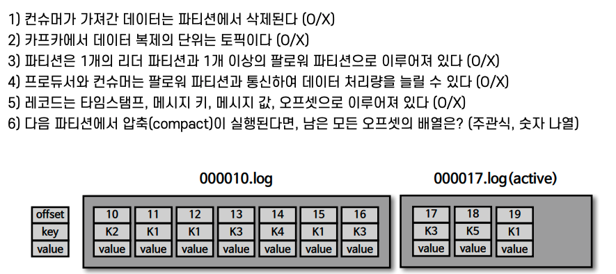 - Active segment: 가장 마지막 세그먼트 파일. 쓰기가 일어나고 있는 파일로 브로커의 삭제 대상에 포함되지 않는다.