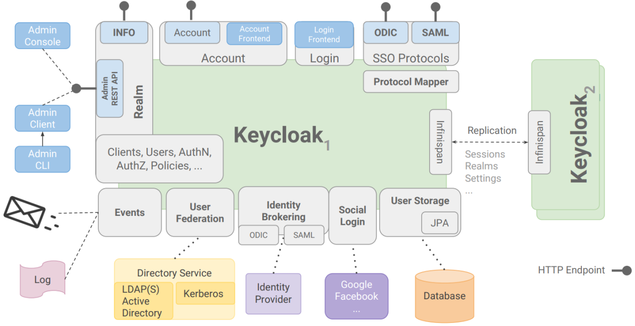 계정 관리 및 access 관리에 용이한 어드민 콘솔을 제공하고, SSO가 가능하다. 즉 마이크로서비스나 웹 애플리케이션에서 사용자 관리 및 보안을 중앙 집중화 하고, 간단하게 구현할 수 있도록 도와준다.
