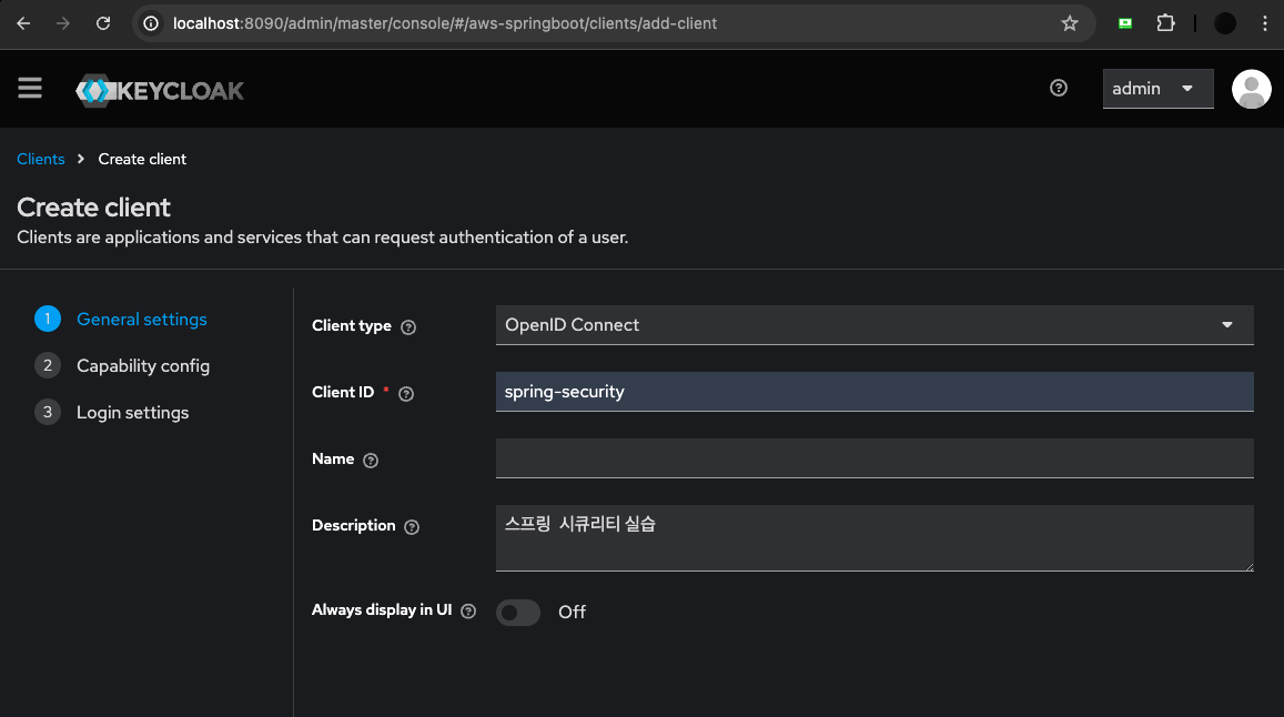 [1] Client 기본 설정: Type은 OpenID, 클라이언트 ID와 설명 작성