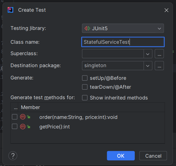 💡TIP | 테스트를 간단하게 추가하는 단축키: 윈도우 기준 Ctrl + Shift + t