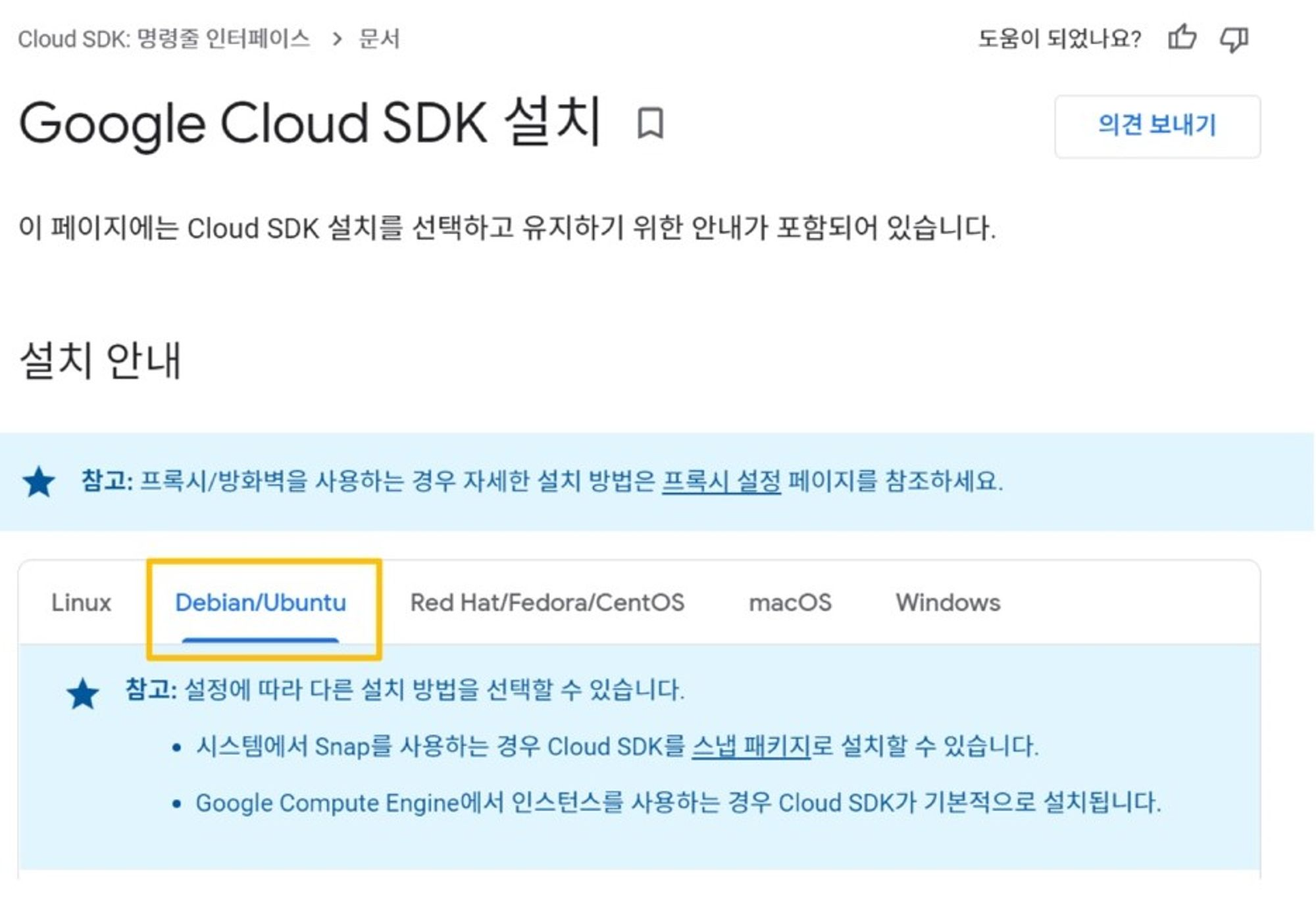 ㄹ. Google Cloud SDK 설치 – 공식 문서 매뉴얼 확인해 주세요