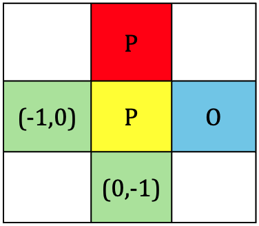 [3] diagonal: 기준 P와 꼭짓점이 맞닿은 대각선 방향 영역에서 P가 발견되는 경우
