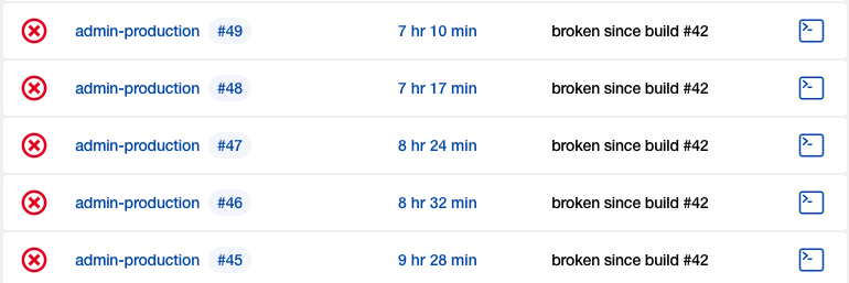 서버 비용 절감을 위해 지난주에 서버 스펙을 기존 t2.medium에서 t2.small로 다운그레이드했는데, 이를 위해 서버를 중지하고 재실행해야 했다. 서버를 재시작한 뒤 네 개의 컨테이너를 빌드하는 젠킨스를 실행했는데, 오늘 보니 도커 네 개 중에 관리자 기능을 담당하는 Admin 컨테이너를 빌드하는 젠킨스에 오류가 발생해 어드민 컨테이너가 작동하지 않고 있었다.