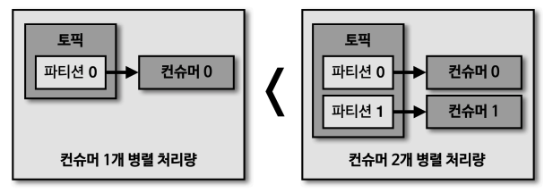 - 컨슈머 처리량이 한정된 상황에서 많은 레코드를 병렬로 처리하는 가장 좋은 방법은 컨슈머의 개수를 늘리는 것(스케일 아웃)