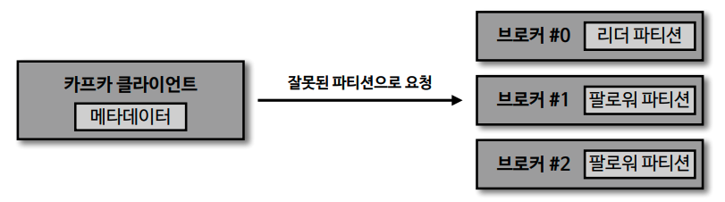 만약 메타데이터가 현재의 파티션 상태에 맞게 리프래시 되지 않아서 잘못된 브로커로 데이터를 요청 시