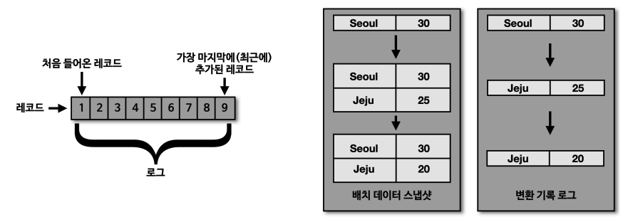 ➡️ 로그는 배치 데이터를 스트림으로 표현하기에 적합하다. -> 타음 스탬프 기록 필수